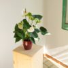 Planta de interior de flores rojas y hojas verdes en forma de corazón, procedente de la selva tropical colombiana, que requiere un ambiente húmedo pero sin exceso de agua para prevenir hongos, por lo que se recomienda un substrato especial. Debe colocarse en un lugar luminoso sin sol directo en verano, aunque en invierno tolera algo de sol por la tarde. El riego debe realizarse cada 7 a 10 días, ajustándose según la humedad de la zona.